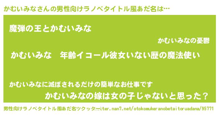 | 女子向けラノベタイトル風あだ名 | 『かむいみなの玉の輿計画!』 |