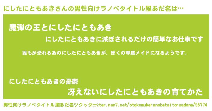 | 胡散臭い通販商品みたいなあだ名 | 『前代未聞の水素水…その名も「にしたにともあき」』 |