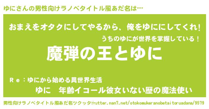 ゆにさんの男性向けラノベタイトル風あだ名をツクッター!