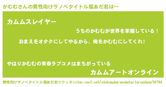| ヒーロー風カッコイイあだ名 | 『正義の使者かむむ』『スーパーカムム』 |