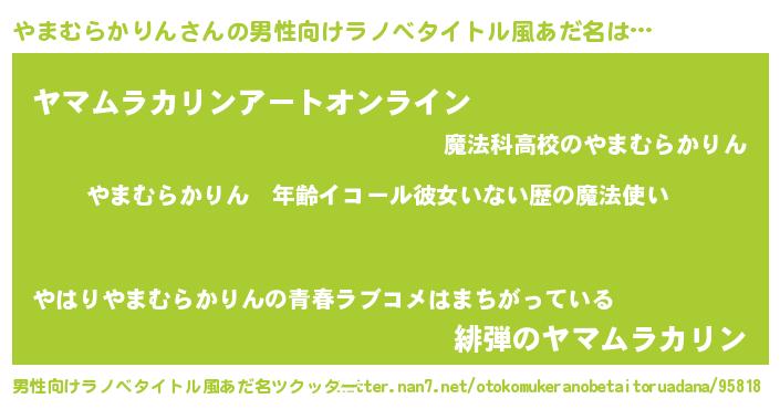 | 女子向けラノベタイトル風あだ名 | 『やまむらかりんの玉の輿計画!』 |