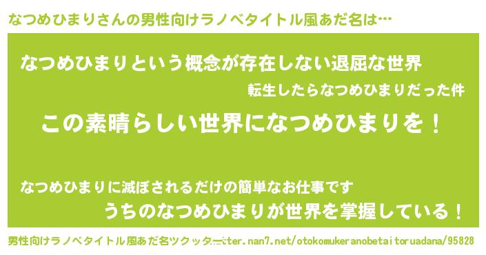 | 女子向けラノベタイトル風あだ名 | 『悪役なつめひまりに転生したようですが、知った事ではありません』 |