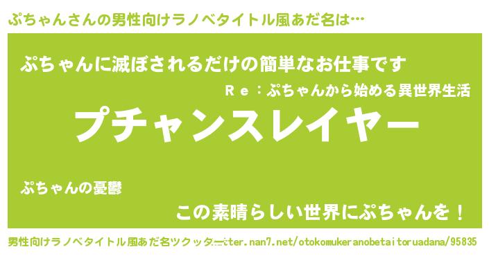 | 意味不明あだ名 | 『めかぶ科ぷちゃん属』『自称ぷちゃん』 |