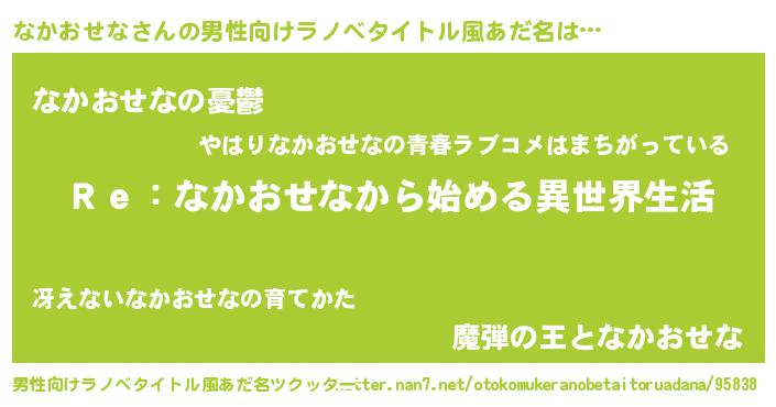 | 女子向けラノベタイトル風あだ名 | 『なかおせなストレイドッグス』 |