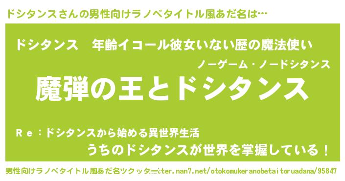 | 女子向けラノベタイトル風あだ名 | 『ドシタンスが死なない童話 林檎のドシタンスの診療簿』 |