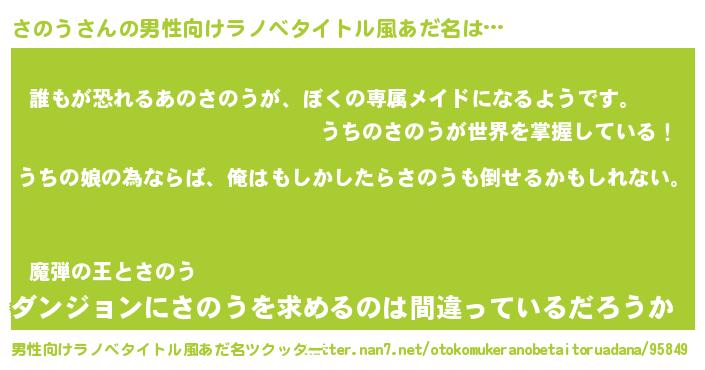 | 女子向けラノベタイトル風あだ名 | 『さのうの婚約者』『さのうは平凡を望む』 |