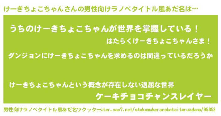 | 胡散臭い通販商品みたいなあだ名 | 『伝統あるサプリメント…その名も「けーきちょこちゃん」』 |