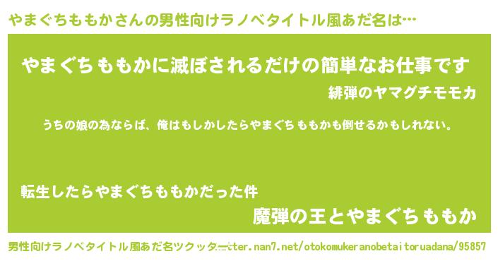 | ヘコむあだ名 | 『酢こんぶ』『やまぐちももか(爆)』 |