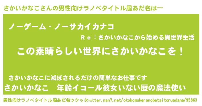| 意味不明あだ名 | 『住所不定無職さかいかなこ(68歳)』 |