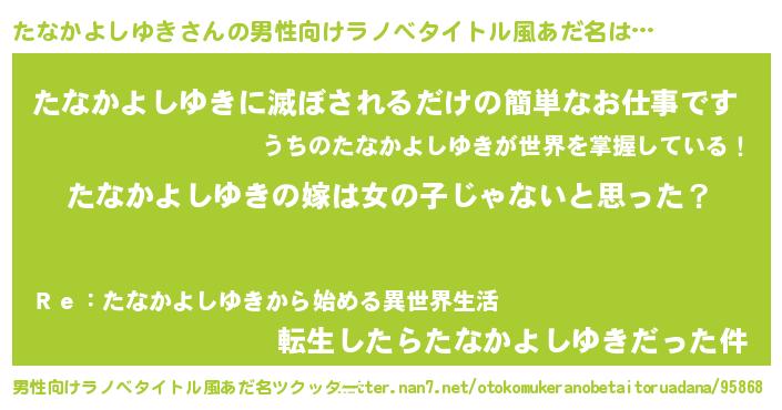 | ポケモン風あだ名 | 『ヒタナカヨシユキ』『タナゴンZ』 |