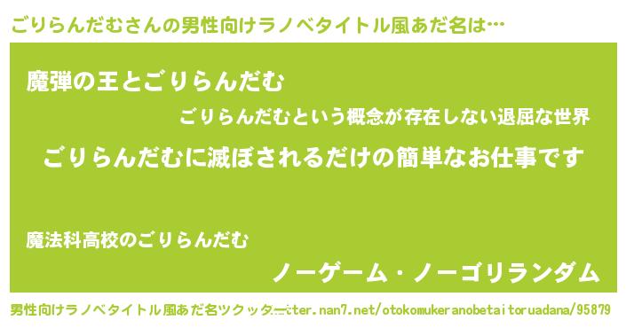 | 胡散臭い通販商品みたいなあだ名 | 『世界中を虜にした世界で10本だけ現存している希少なブランデー…その名も「ごりらんだむ」』 |