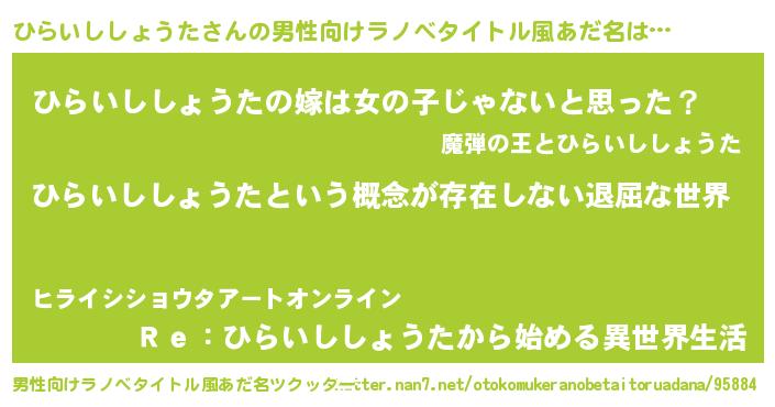 | ヒーロー風カッコイイあだ名 | 『ネオヒライシショウタ』『幻影騎士ヒラ』 |