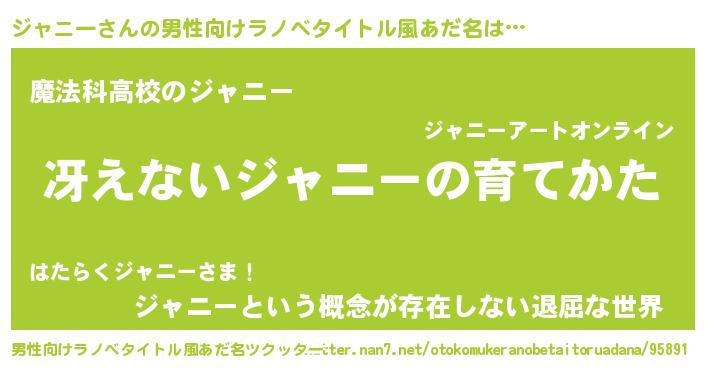 | ヘコむあだ名 | 『ジャニー(苦笑)』『ジャっふぃ~』 |