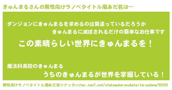 | 意味不明あだ名 | 『住所不定無職きゅんまる(8歳)』 |