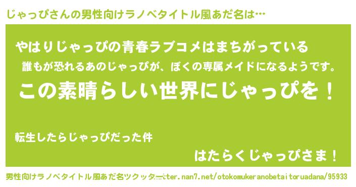 | 意味不明あだ名 | 『住所不定無職じゃっぴ(3歳)』 |