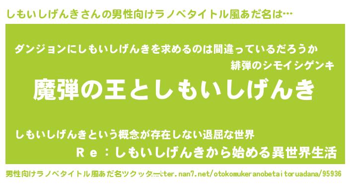 | 女子向けラノベタイトル風あだ名 | 『乙女ゲームの破滅フラグしかない悪役しもいしげんきに転生してしまった…』 |