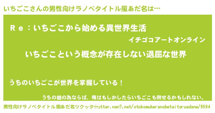 | 女子向けラノベタイトル風あだ名 | 『異世界で失敗しない100のいちごこ』 |