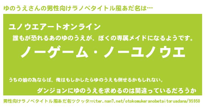 | 女子向けラノベタイトル風あだ名 | 『ゆのうえ恋絵巻』『ゆのうえ伯爵の花嫁』 |