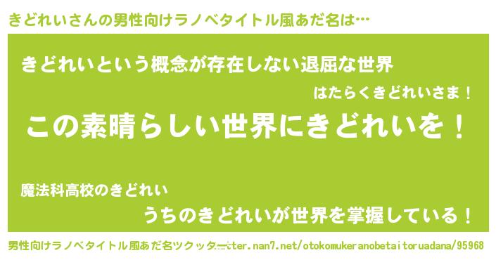 | 胡散臭い通販商品みたいなあだ名 | 『あなたにだけ特別に提供する限定10本のレアな日本酒…その名も「きどれい」』 |