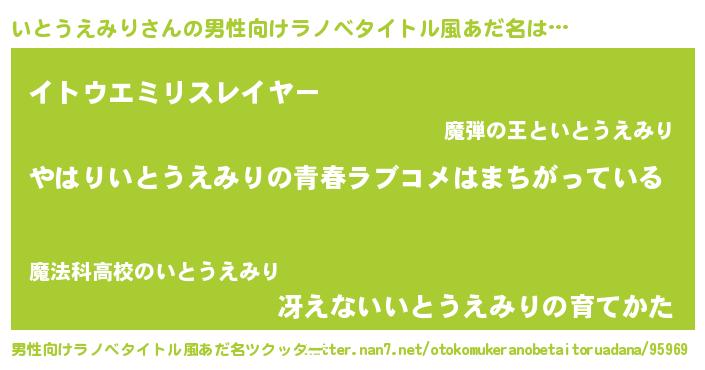 | 女子向けラノベタイトル風あだ名 | 『いとうえみりの雑貨屋さん』 |
