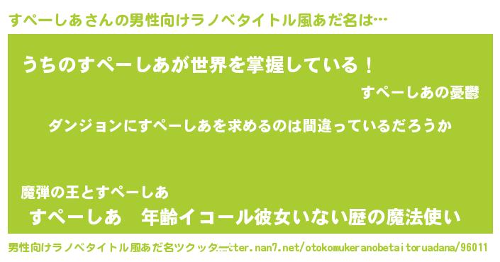 | 意味不明あだ名 | 『とにかく怪しいすぺーしあ』 |