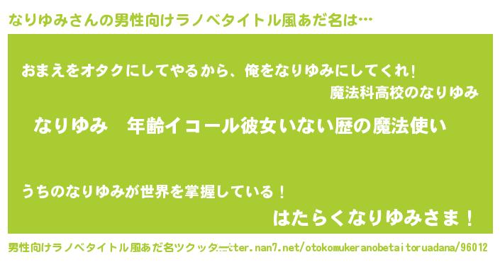 | ヒーロー風カッコイイあだ名 | 『慈愛の使者なりゆみ』『暗黒騎士ナリ』 |