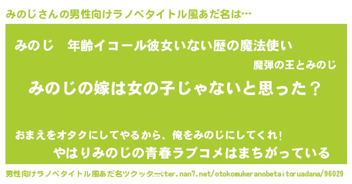 | 胡散臭い通販商品みたいなあだ名 | 『全米が絶賛したサプリメント…その名も「みのじ」』 |