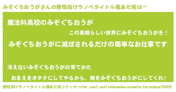 | 意味不明あだ名 | 『自称みぞぐちおうが』 |
