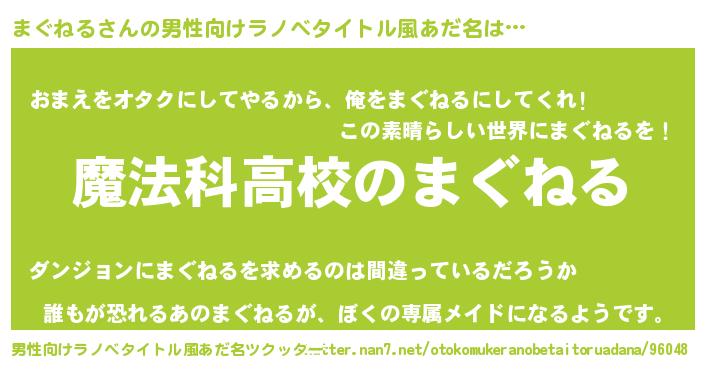 | 女子向けラノベタイトル風あだ名 | 『まぐねるなんてお断りですっ。』 |