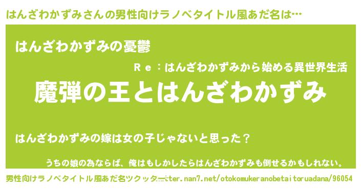 | 女子向けラノベタイトル風あだ名 | 『はんざわかずみが死なない童話 林檎のはんざわかずみの診療簿』 |