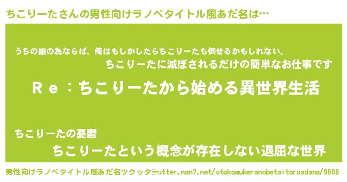 | 意味不明あだ名 | 『自称ちこりーた』『永久保存ちこりーた』 |