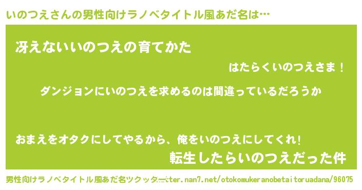 | 胡散臭い通販商品みたいなあだ名 | 『信頼と実績のサプリメント…その名も「いのつえ」』 |