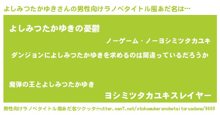 | 女子向けラノベタイトル風あだ名 | 『よしみつたかゆきは平凡を望む』 |