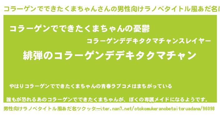 | 女子向けラノベタイトル風あだ名 | 『シンデレラコラーゲンでできたくまちゃん家の靴箱館』 |