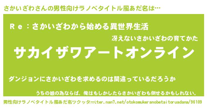 | 胡散臭い通販商品みたいなあだ名 | 『億万長者になれるブレスレット…その名も「さかいざわ」』 |