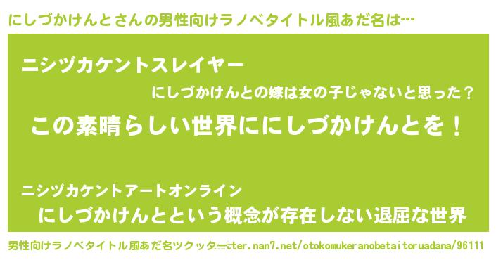 | 意味不明あだ名 | 『住所不定無職にしづかけんと(62歳)』 |