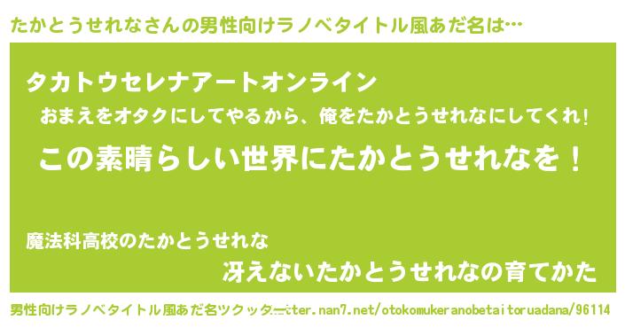 | 意味不明あだ名 | 『住所不定無職たかとうせれな(14歳)』 |