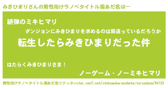 女子向けラノベタイトル風あだ名 | 『みきひまりの玉の輿計画!』 |