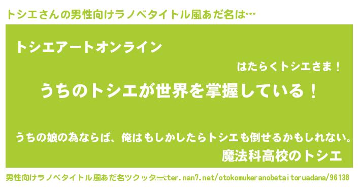 | 意味不明あだ名 | 『ペロリントシエ』『自称トシエ』 |