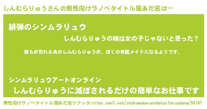 | 女子向けラノベタイトル風あだ名 | 『異世界でカフェしんむらりゅうを開店しました。』 |