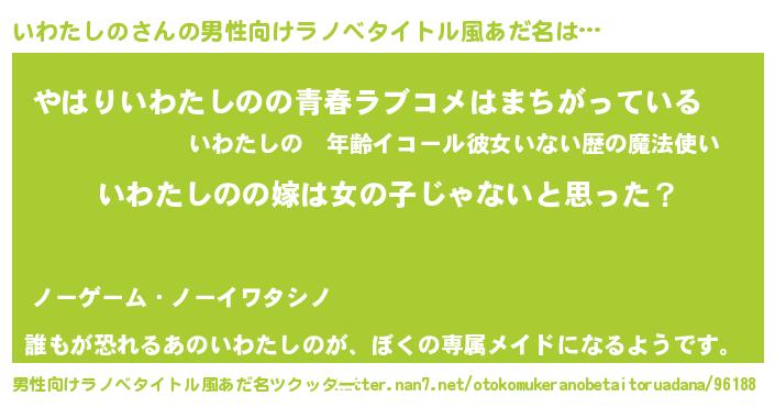 | 女子向けラノベタイトル風あだ名 | 『いわたしの様がみてる』 |