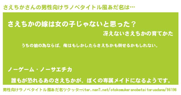 | 女子向けラノベタイトル風あだ名 | 『さえちかの婚約者』 |