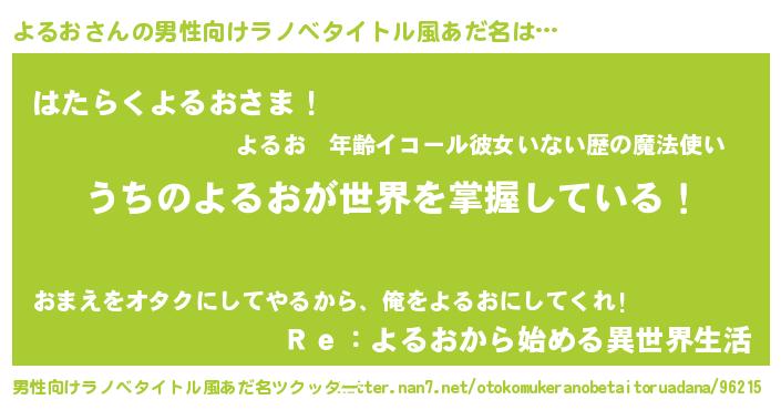 | ヘコむあだ名 | 『よるにゅー』『よるっぺ』 |