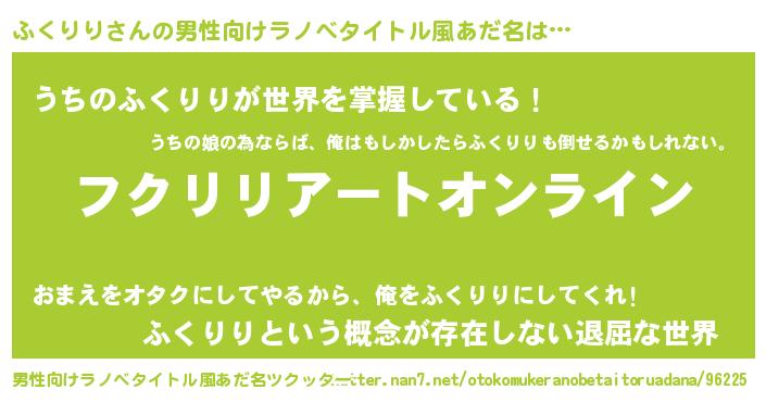 | 女子向けラノベタイトル風あだ名 | 『ふくりり姫と円卓の騎士』 |