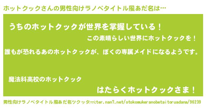 | 胡散臭い通販商品みたいなあだ名 | 『来世でも幸せになれる水素水…その名も「ホットクック」』 |