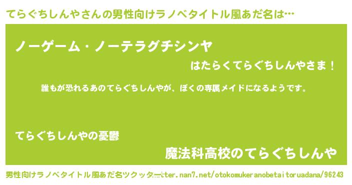 | ヘコむあだ名 | 『てらぐちしんや(小並感)』『てらもー』 |