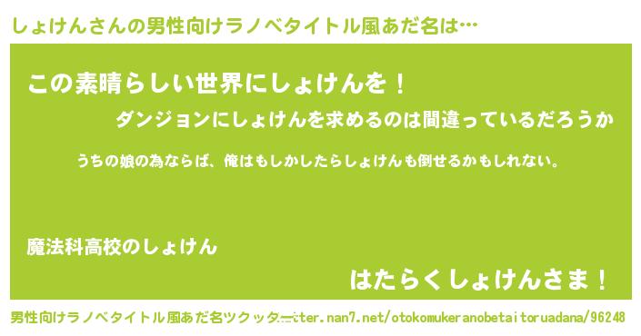 | 胡散臭い通販商品みたいなあだ名 | 『運命の人と巡り会える高級そうな絵画…その名も「しょけん」』 |