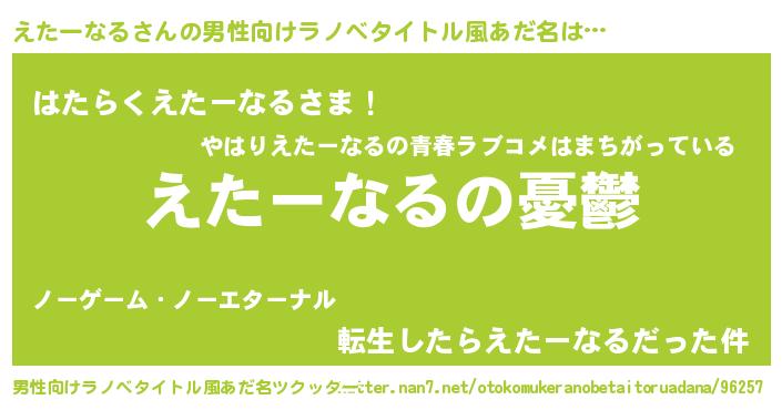 女子向けラノベタイトル風あだ名 | 『(仮)えたーなるのやんごとなき事情』 |