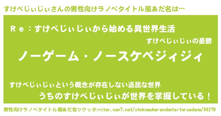 | 女子向けラノベタイトル風あだ名 | 『死神すけべじぃじぃの再婚』 |