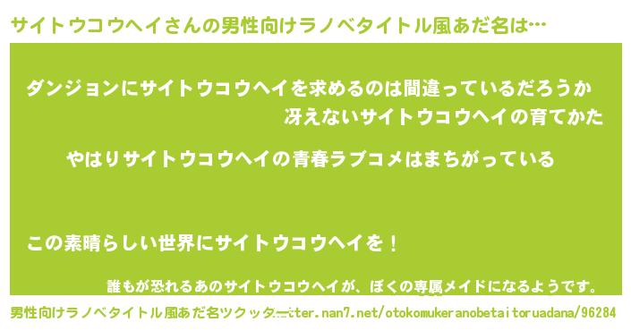 | 女子向けラノベタイトル風あだ名 | 『サイトウコウヘイの雑貨屋さん』 |